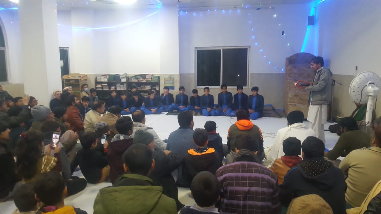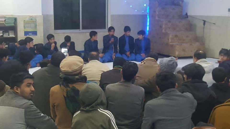 ولادت امام محمد تقی علیہ السلام کی مناسبت سے نو رجب المرجب کی شب #علمدار_اسلامک_ٹرسٹ کینٹ راولپنڈی میں جشن انتہائی عقیدت و احترام سے منایا گیا اس جشن میں حفاظ القرآن سکردو کے طلبا مظاہرہ حفظ کے لئے مدعو تھے حفاظ نے جشن میں شرکت کی اور شان اہلبیت علیہم السلام میں تواشیح پیش کی ساتھ میں حفظ کا شاندار اور کامیاب مظاہرہ کیا جس میں حفظ ،مفاہیم و موضوعات اور دیگر فنون قرآنی کے متعلق مؤمنین کی جانب سے کئے گئے سوالات کے نہایت خوبصورت اور مطمئن بخش جوابات دیے۔ پروگرام اور جشن کا اختتام اسما الحسنی سے ہوا۔